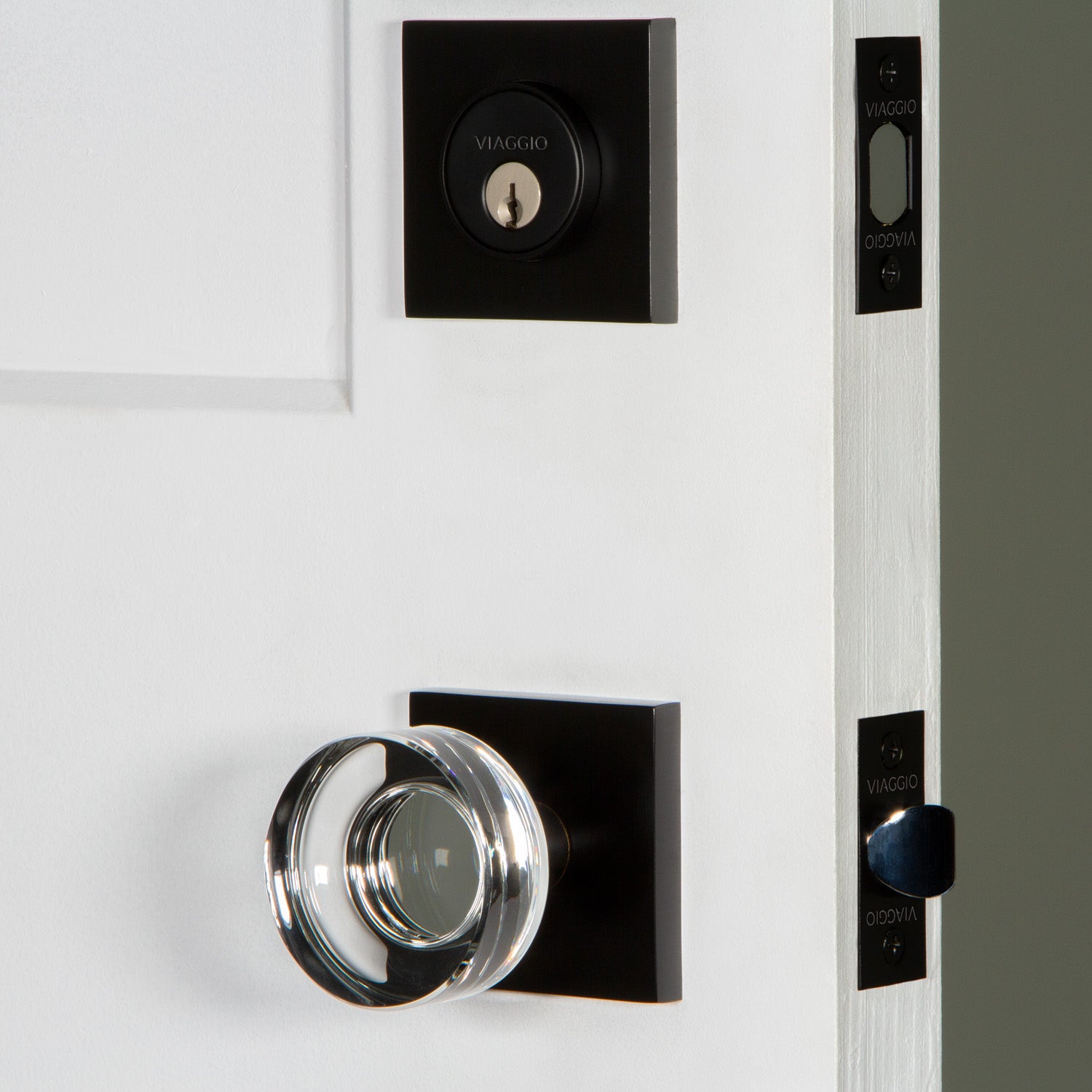 Quadrato Rosette Entry Set with Circolo Crystal Knob in Satin Black