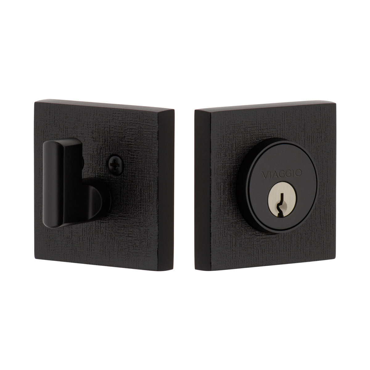 Quadrato Linen Single Cylinder Deadbolt in Satin Black