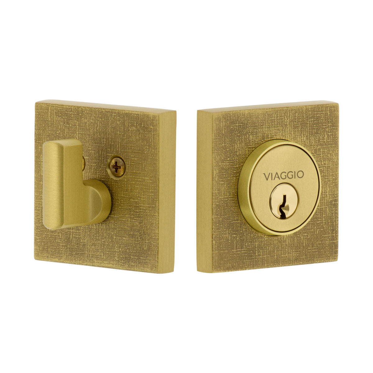 Quadrato Linen Single Cylinder Deadbolt in Satin Brass