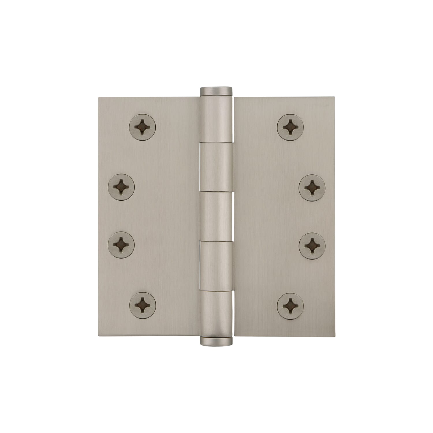4" Button Tip Heavy Duty Hinge with Square Corners in Satin Nickel