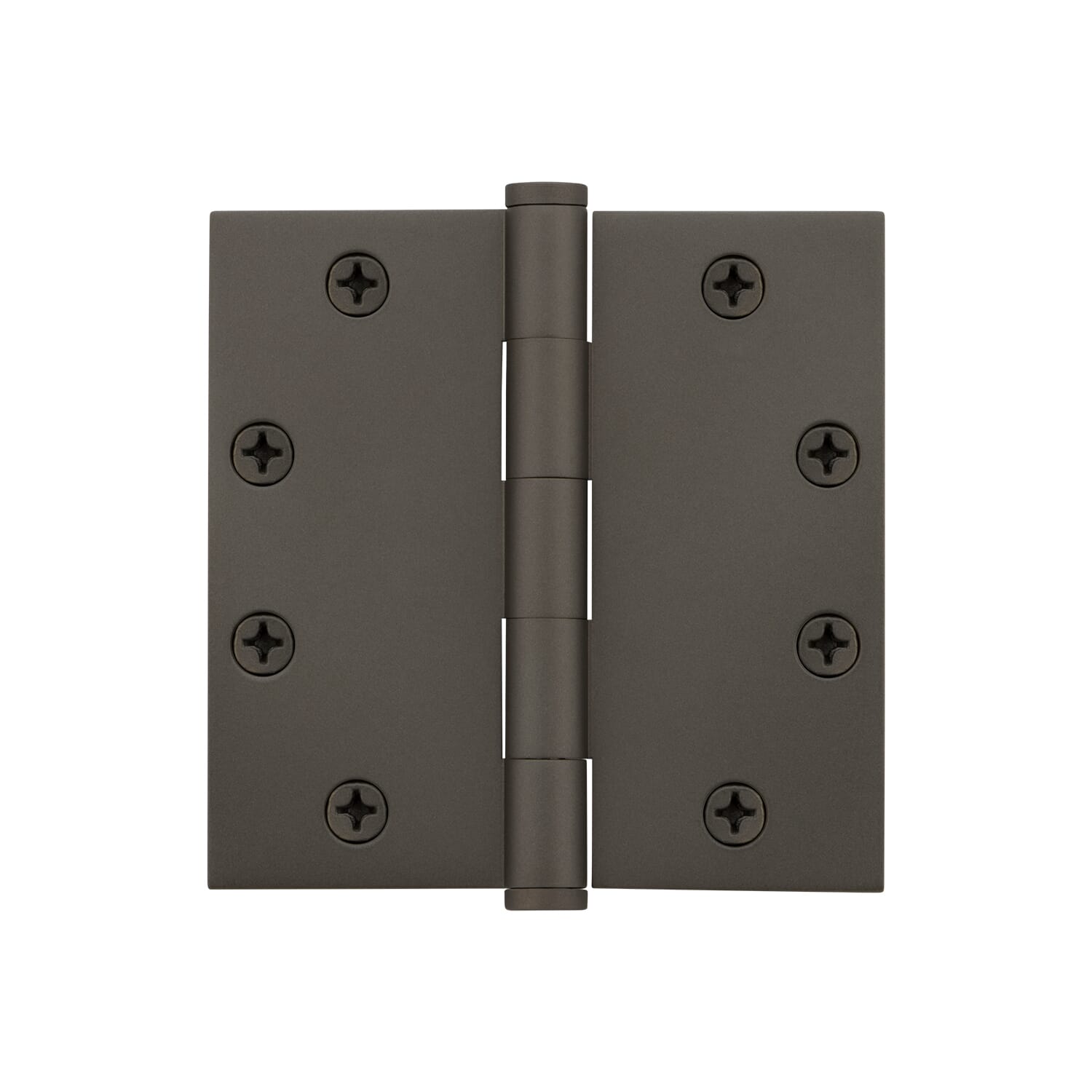 3.5" Button Tip Residential Hinge with Square Corners in Titanium Gray