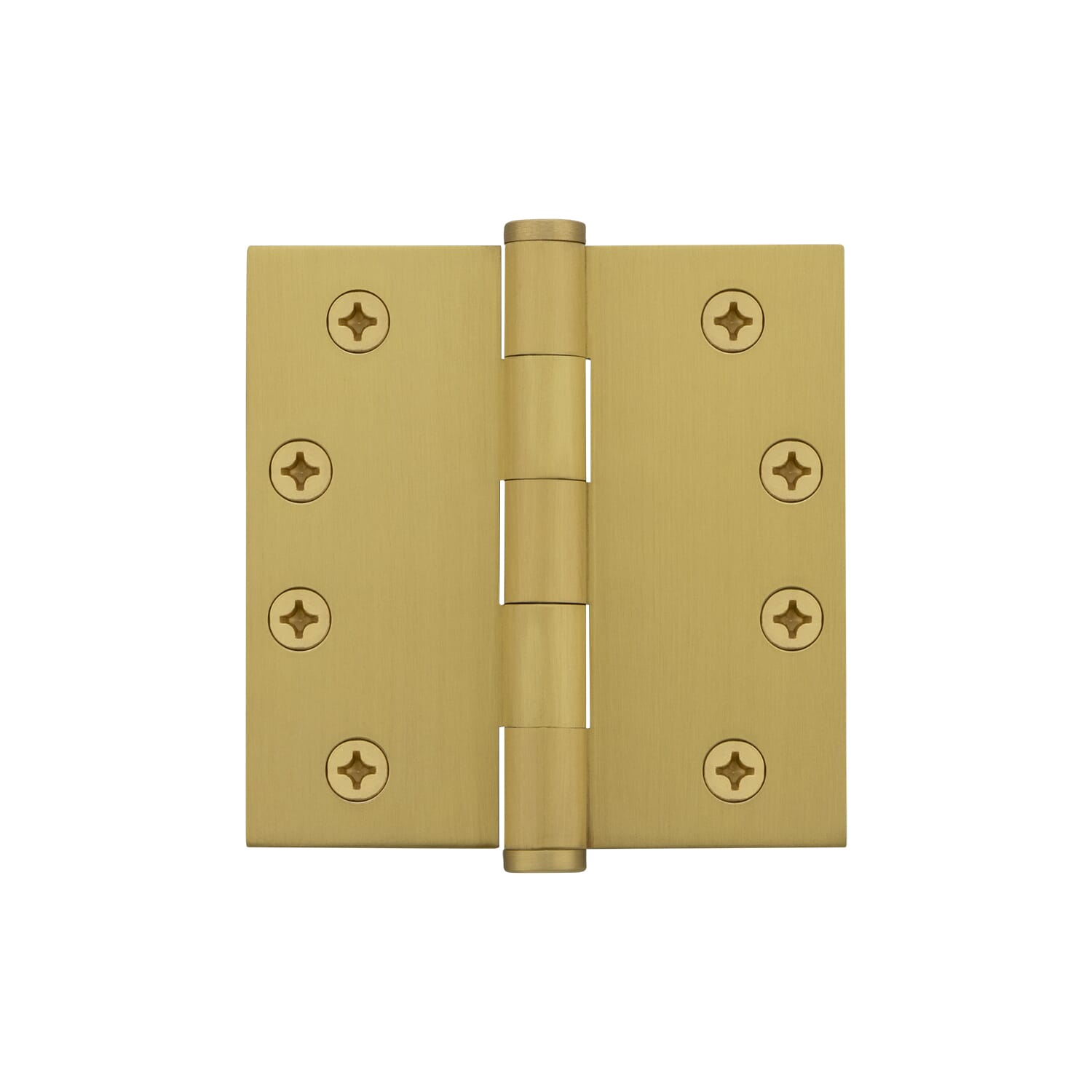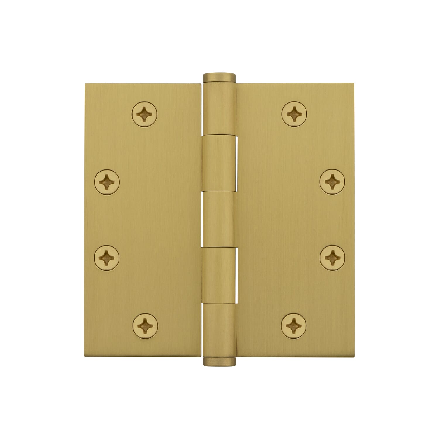 4" Button Tip Residential Hinge with 5/8" Radius Corners in Satin Brass