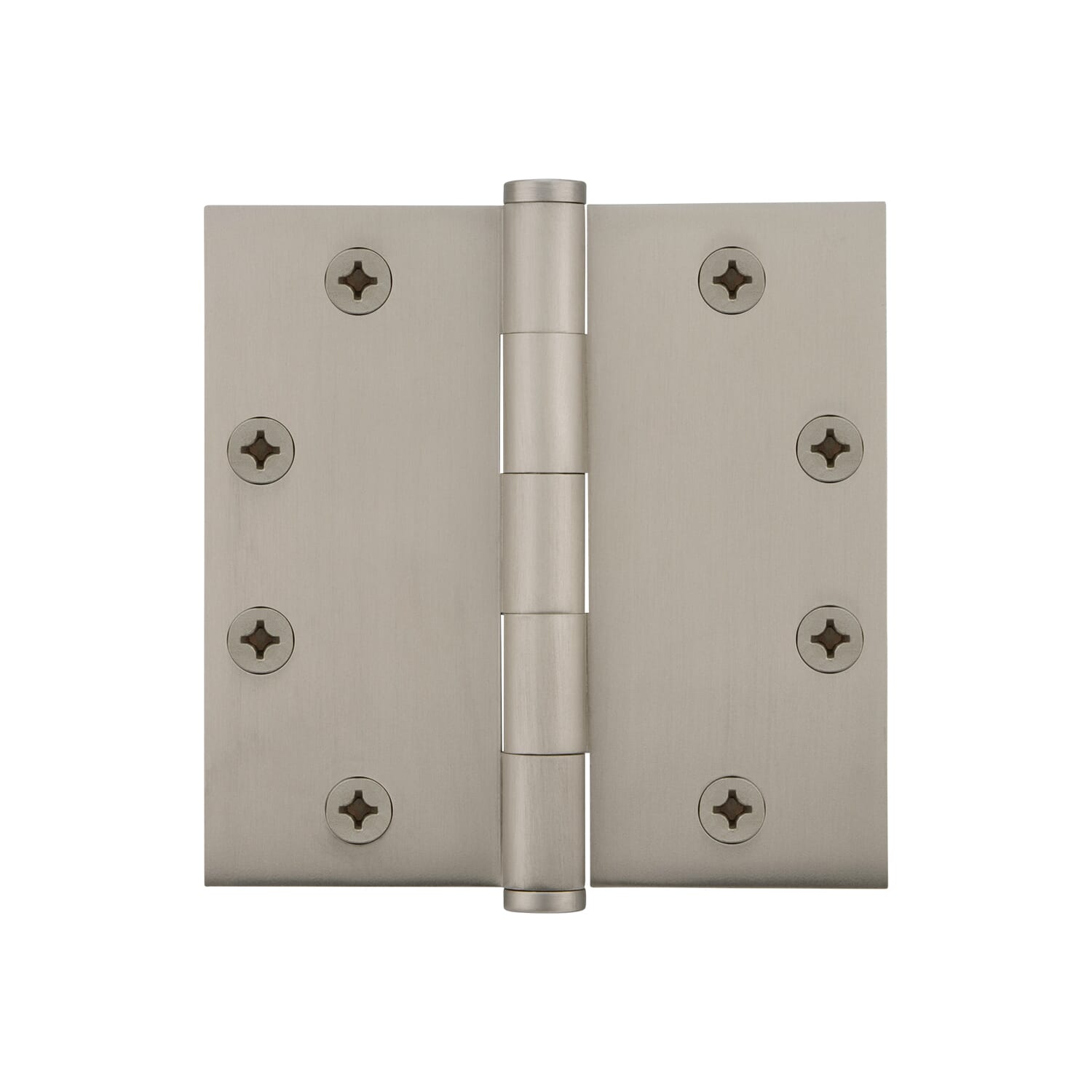 4" Button Tip Residential Hinge with Square Corners in Satin Nickel