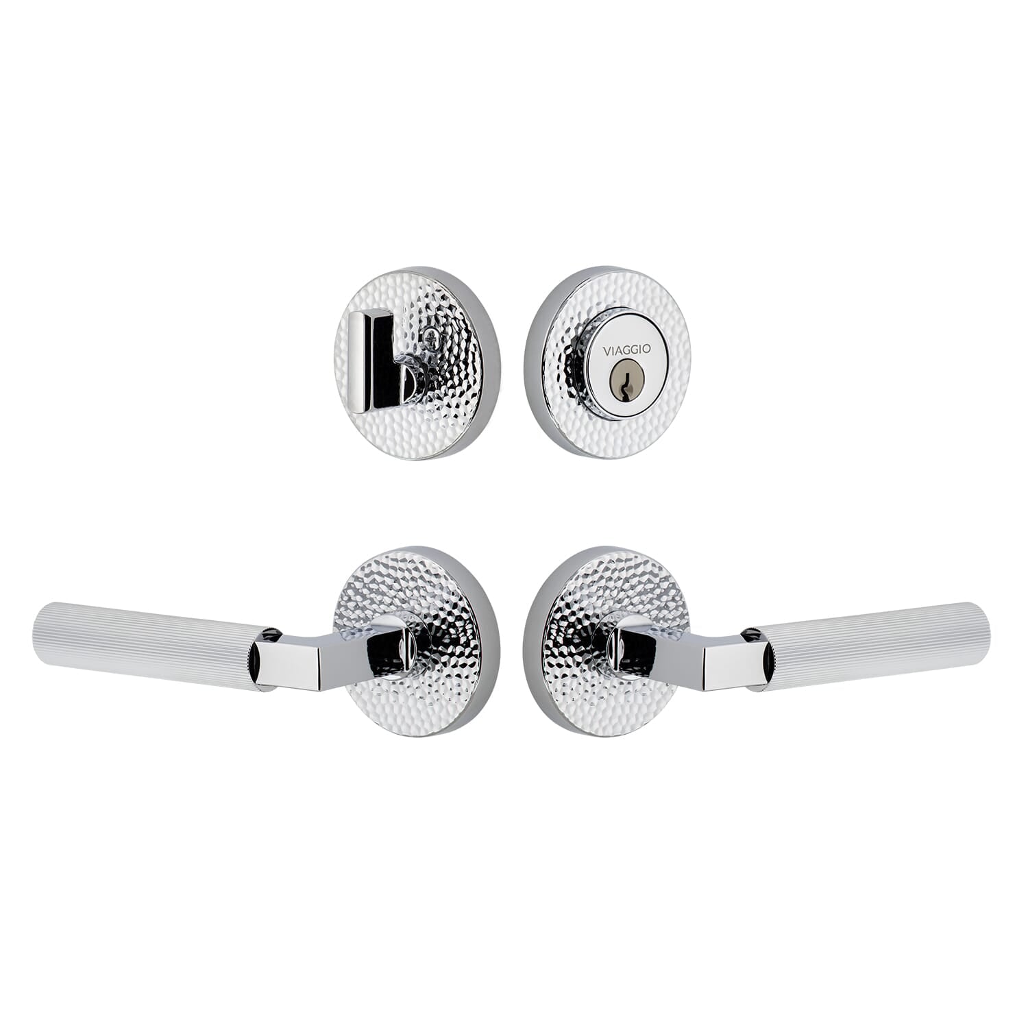 Circolo Hammered Rosette Entry Set with Contempo Fluted Lever in Bright Chrome
