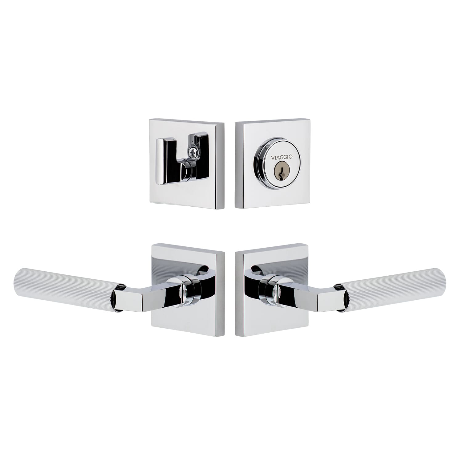 Quadrato Rosette Entry Set with Contempo Fluted Lever in Bright Chrome