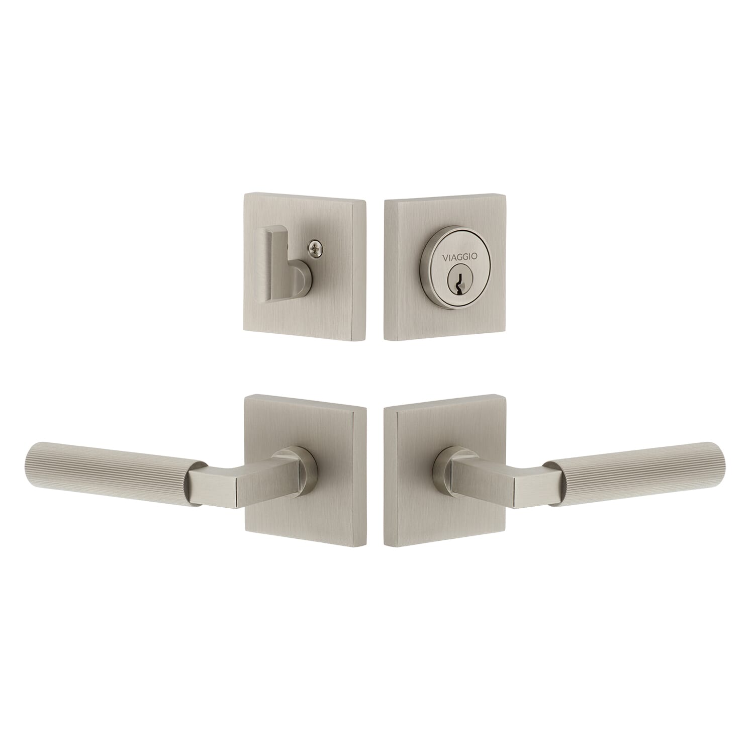 Quadrato Rosette Entry Set with Contempo Fluted Lever in Satin Nickel