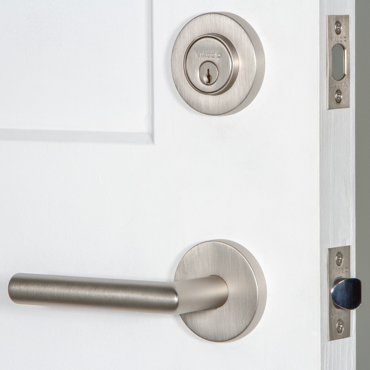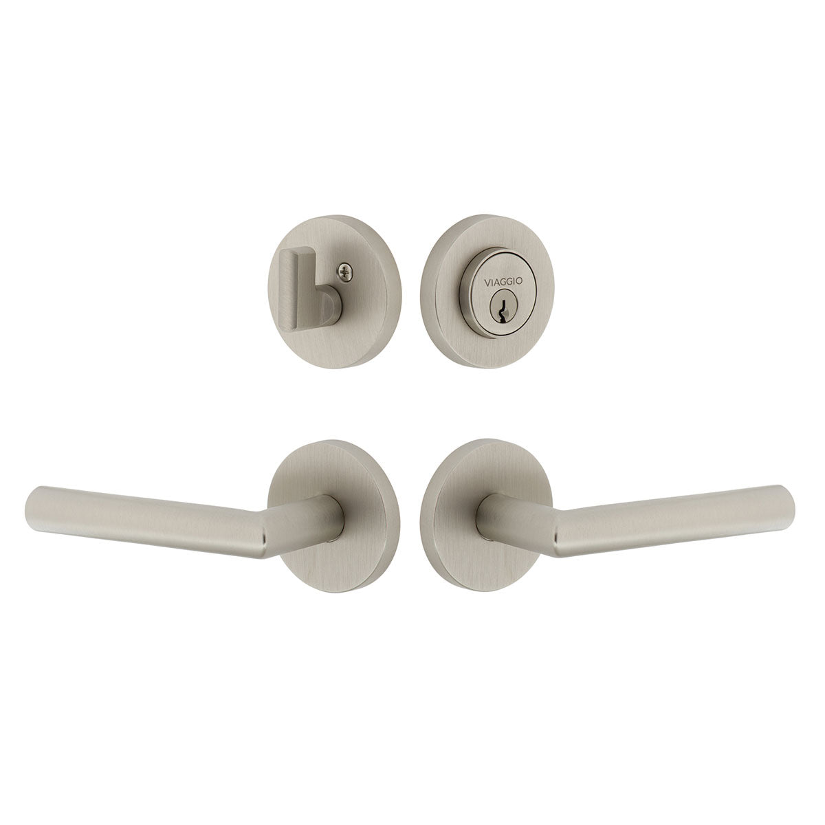 Circolo Rosette Entry Set with Moderno Lever in Satin Nickel