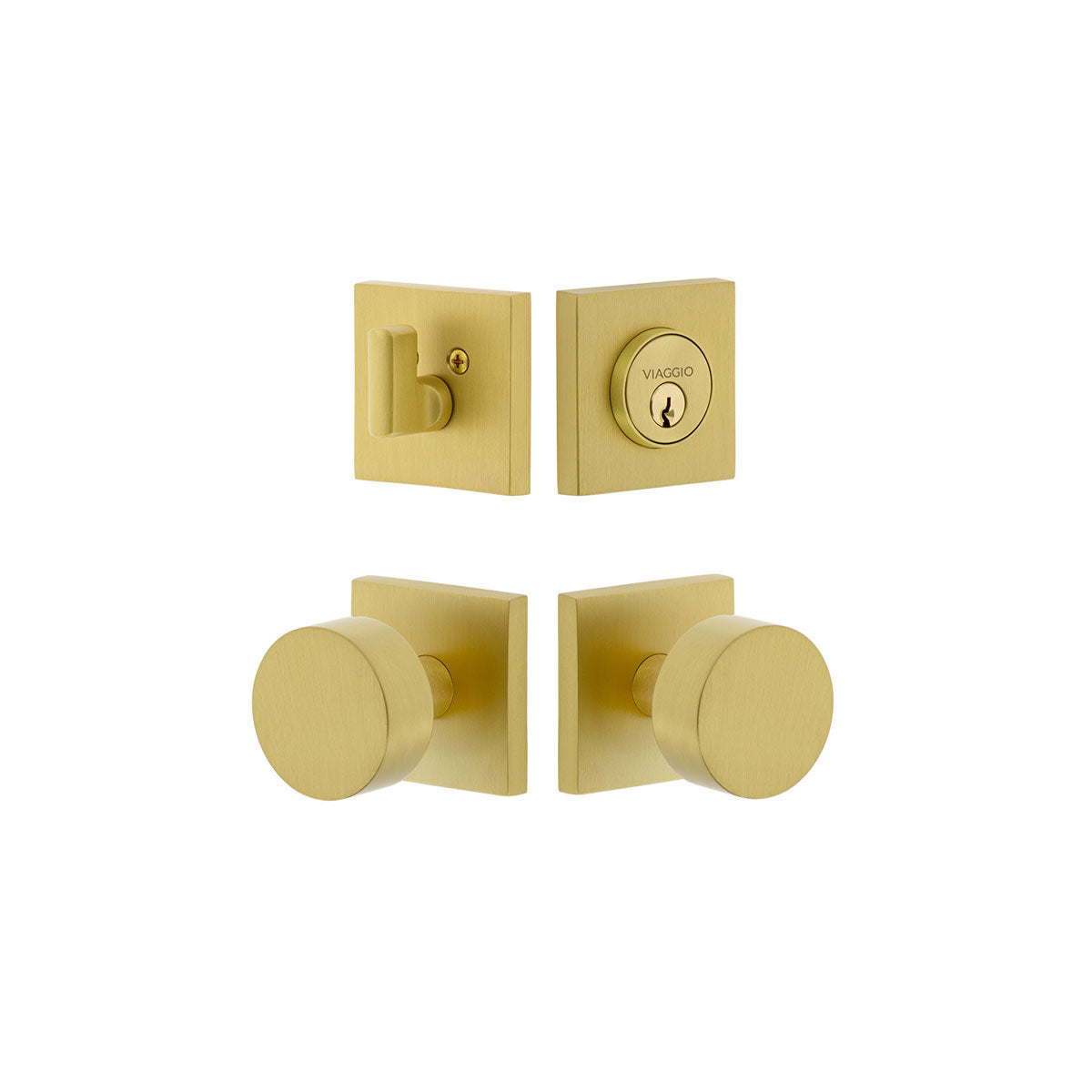 Quadrato Rosette Entry Set with Circolo Knob in Satin Brass