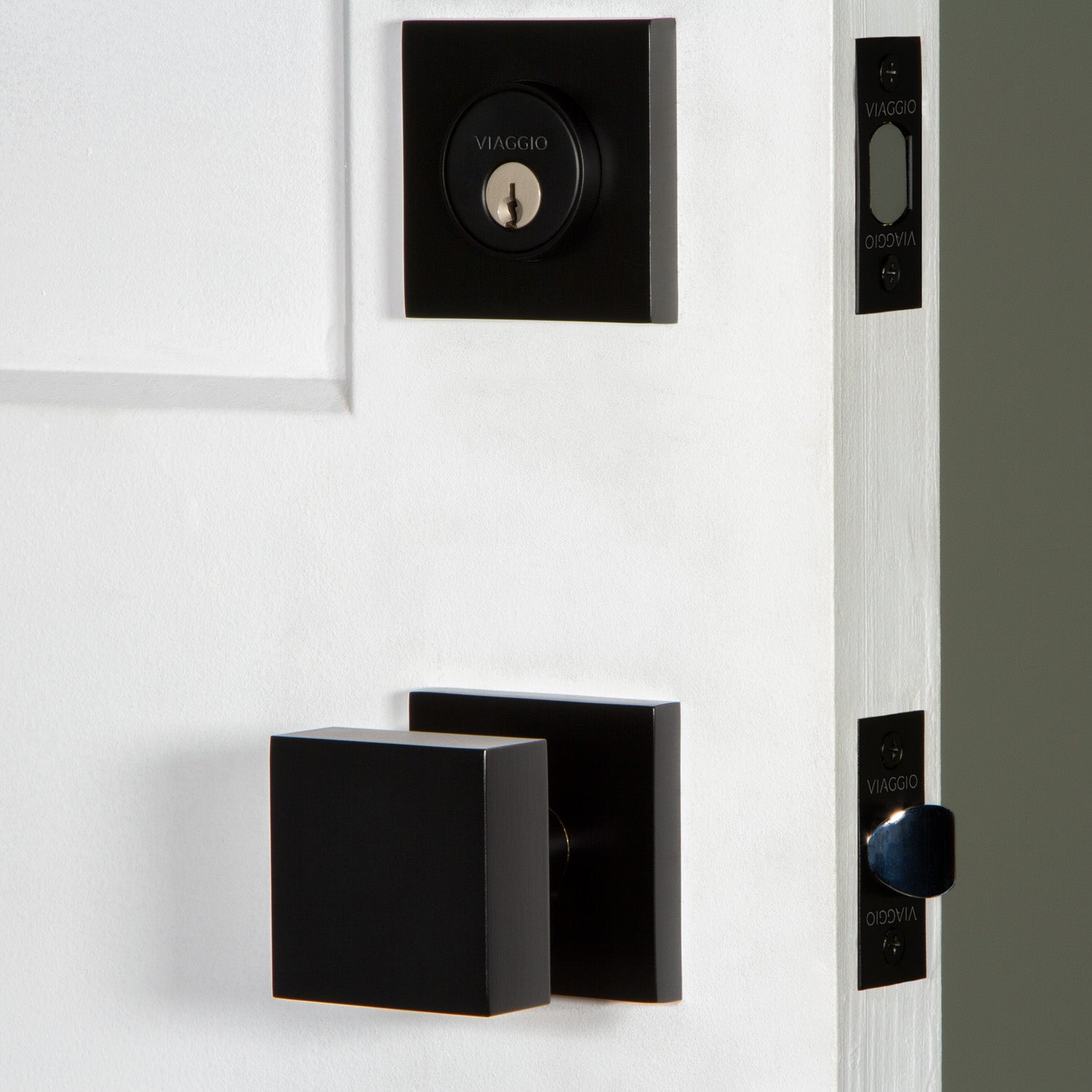 Quadrato Rosette Entry Set with Quadrato Knob in Satin Black