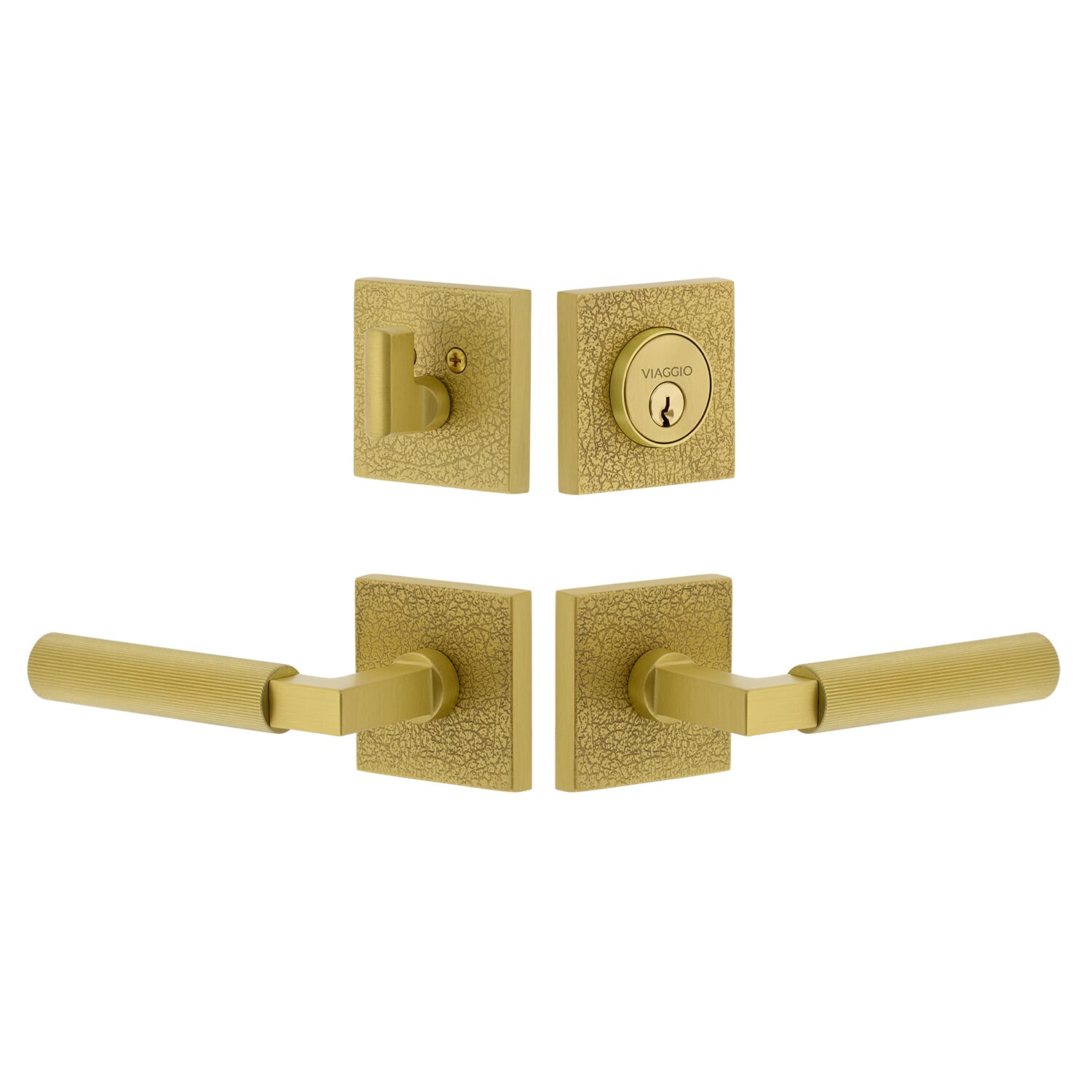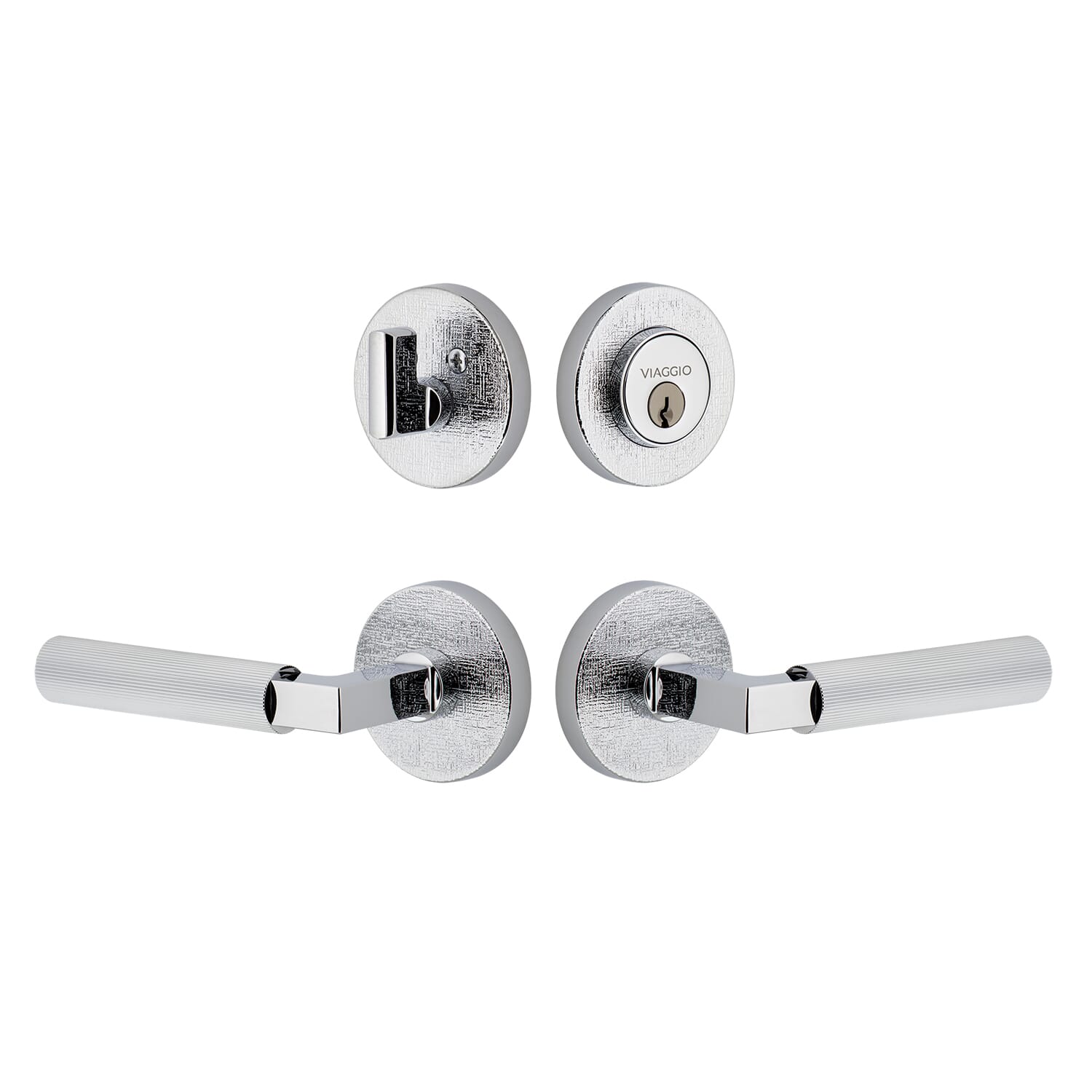 Quadrato Linen Rosette Entry Set with Contempo Fluted Lever in Bright Chrome