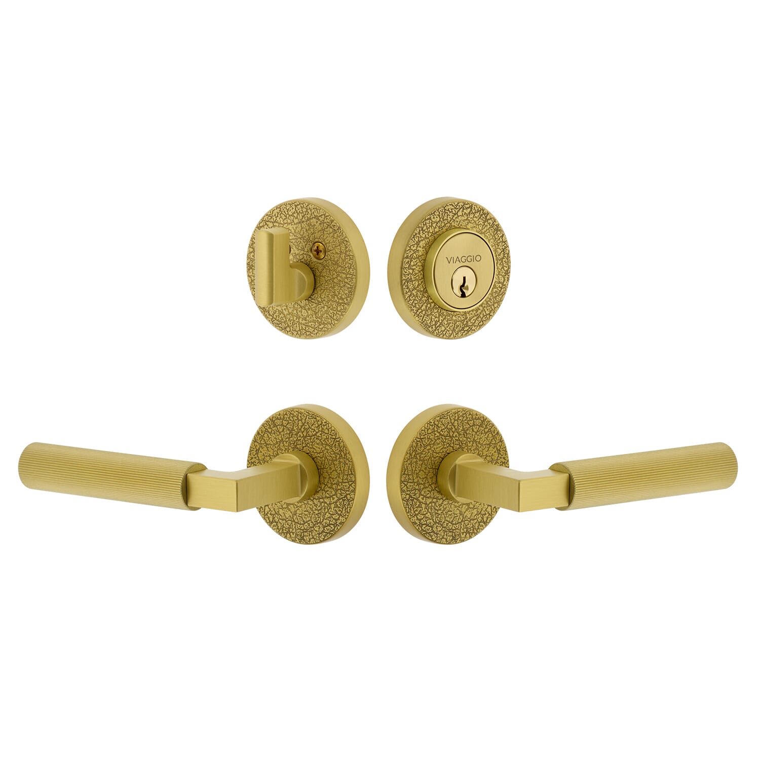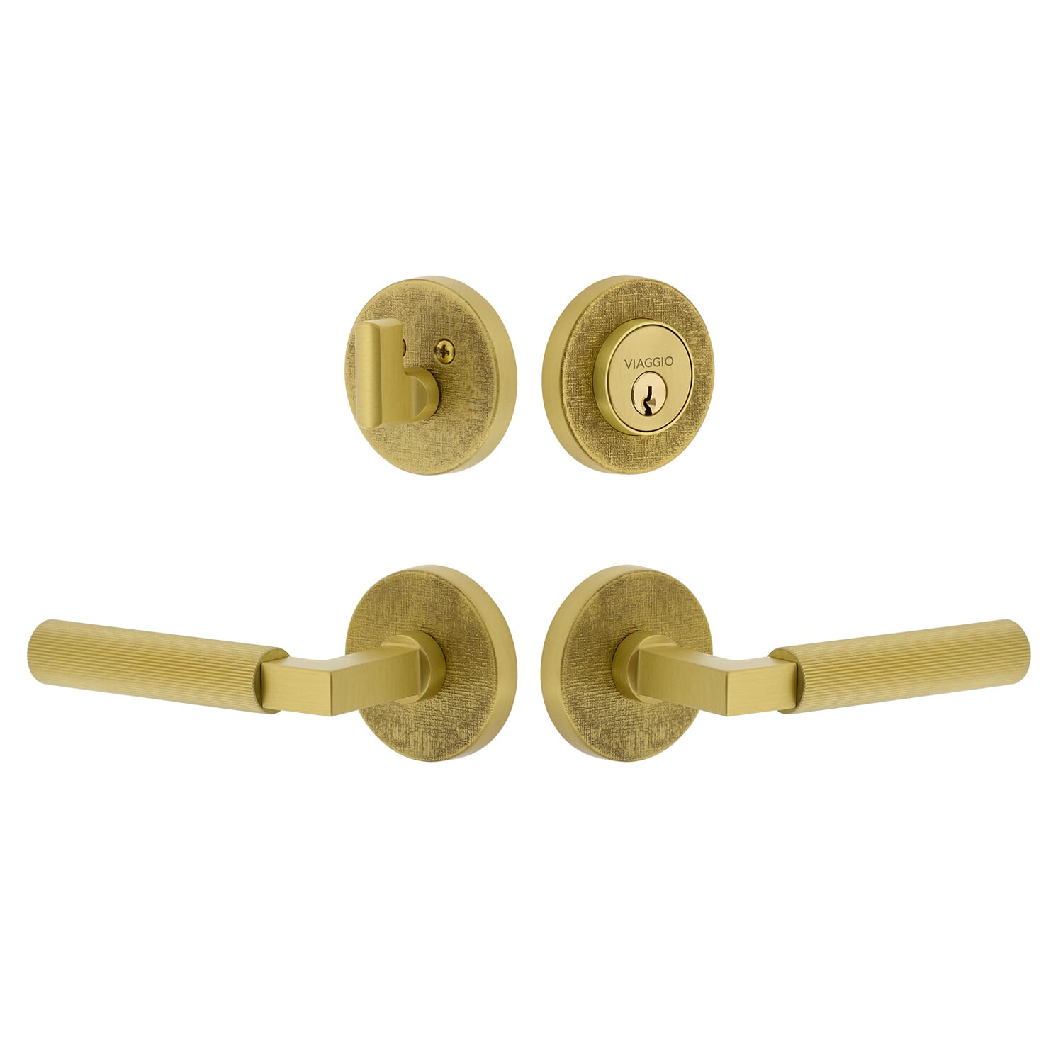 Circolo Linen Rosette Entry Set with Contempo Fluted Lever in Satin Brass