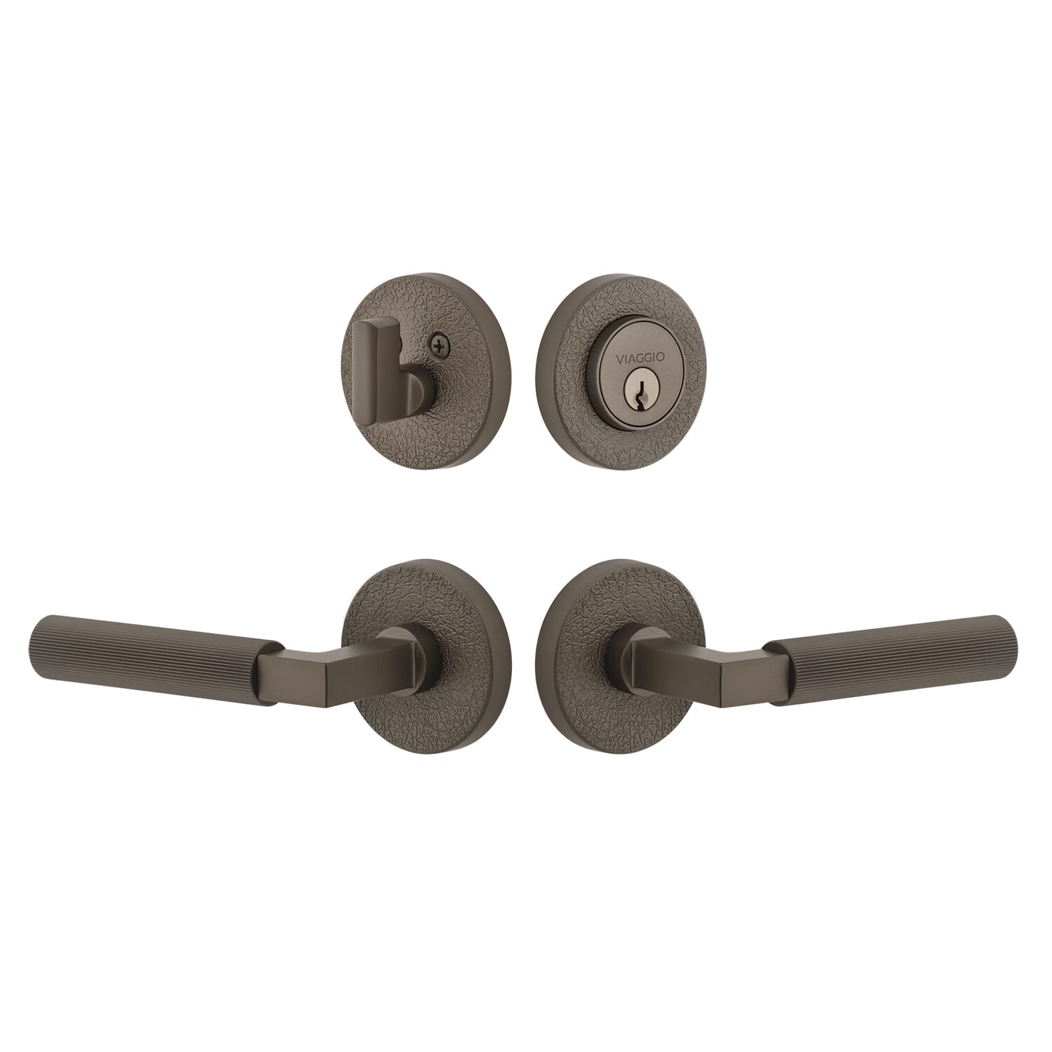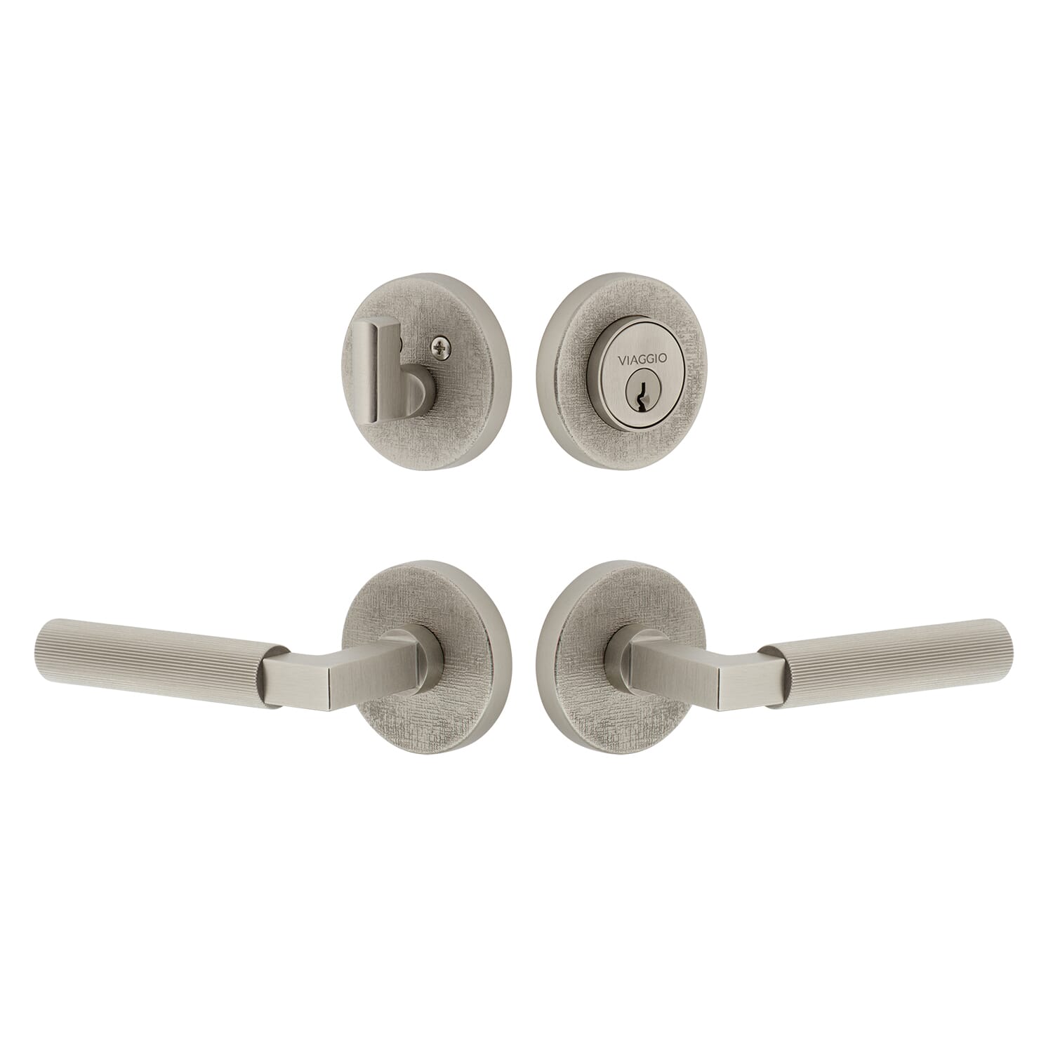 Circolo Linen Rosette Entry Set with Contempo Fluted Lever in Titanium Gray