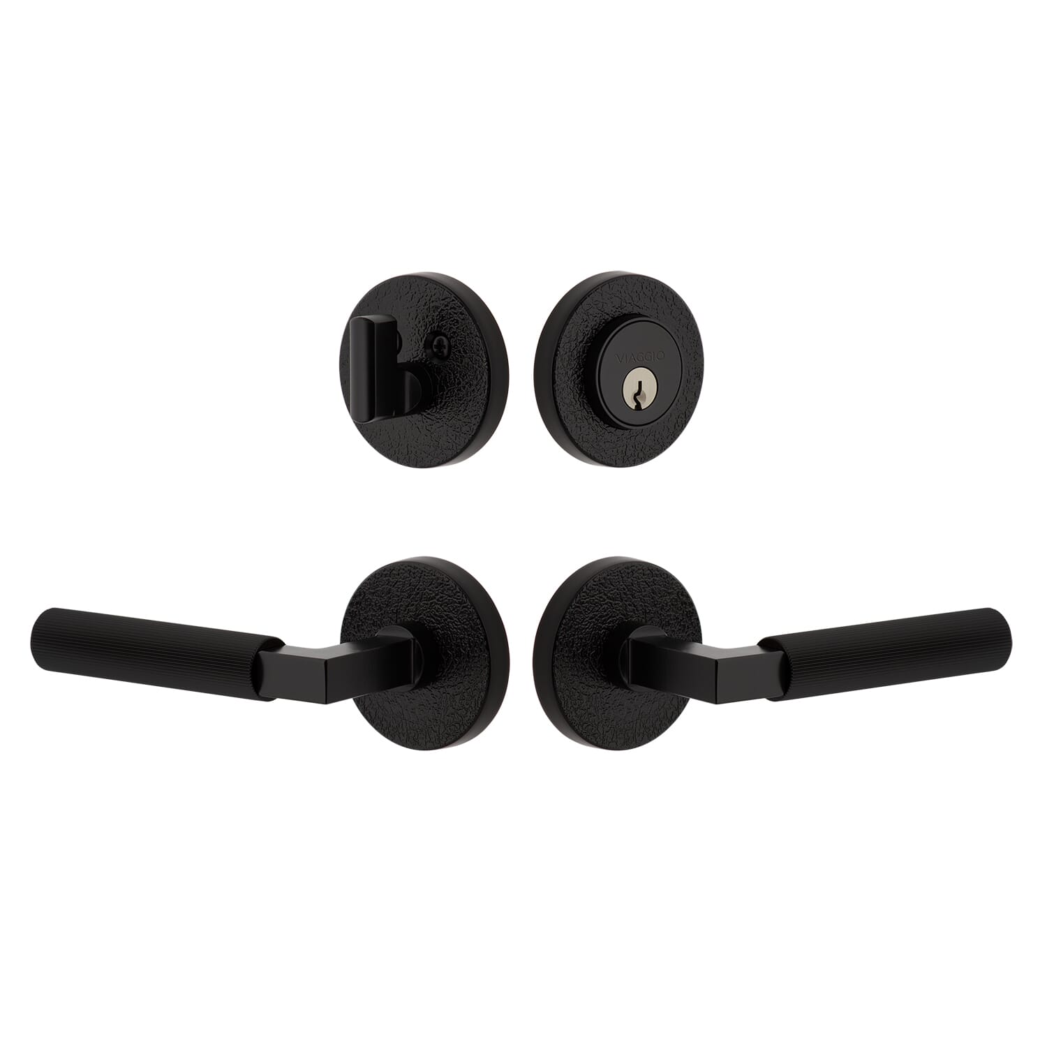Circolo Linen Rosette Entry Set with Contempo Fluted Lever in Satin Black