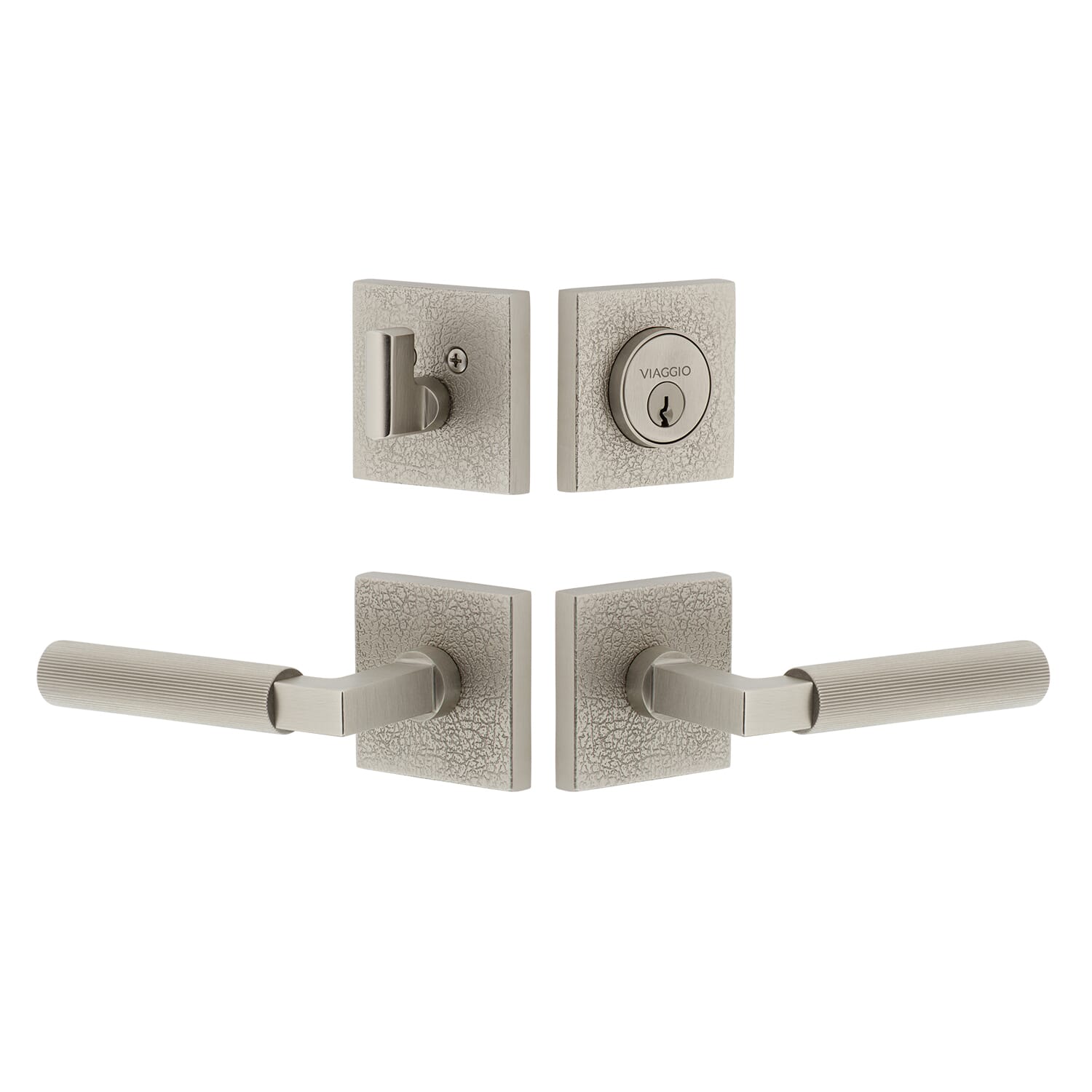Quadrato Linen Rosette Entry Set with Contempo Fluted Lever in Titanium Gray