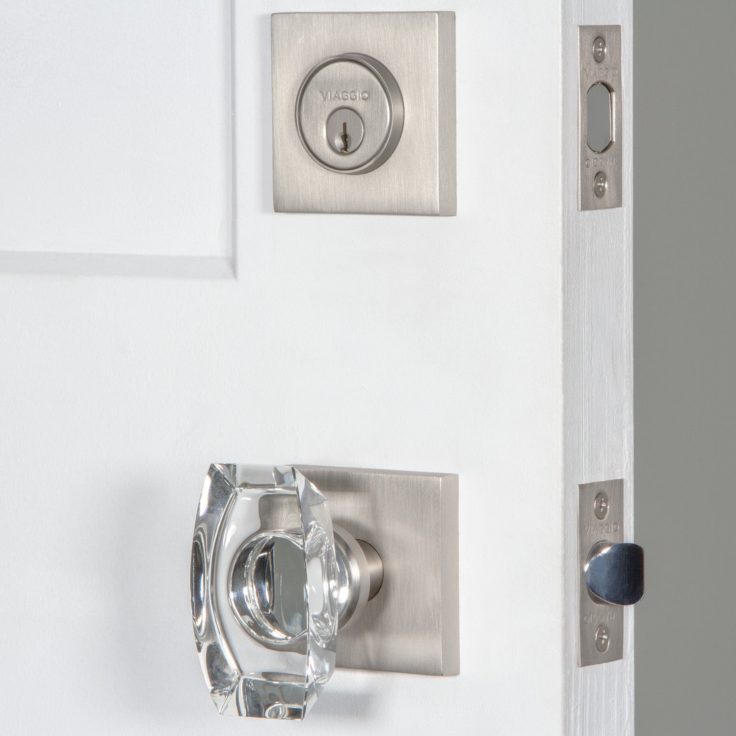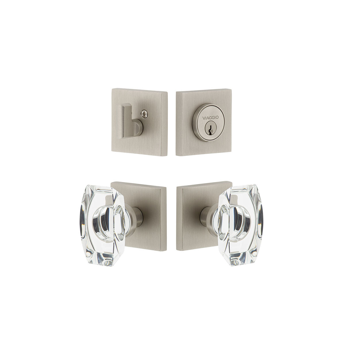 Quadrato Rosette Entry Set with Stella Knob in Satin Nickel