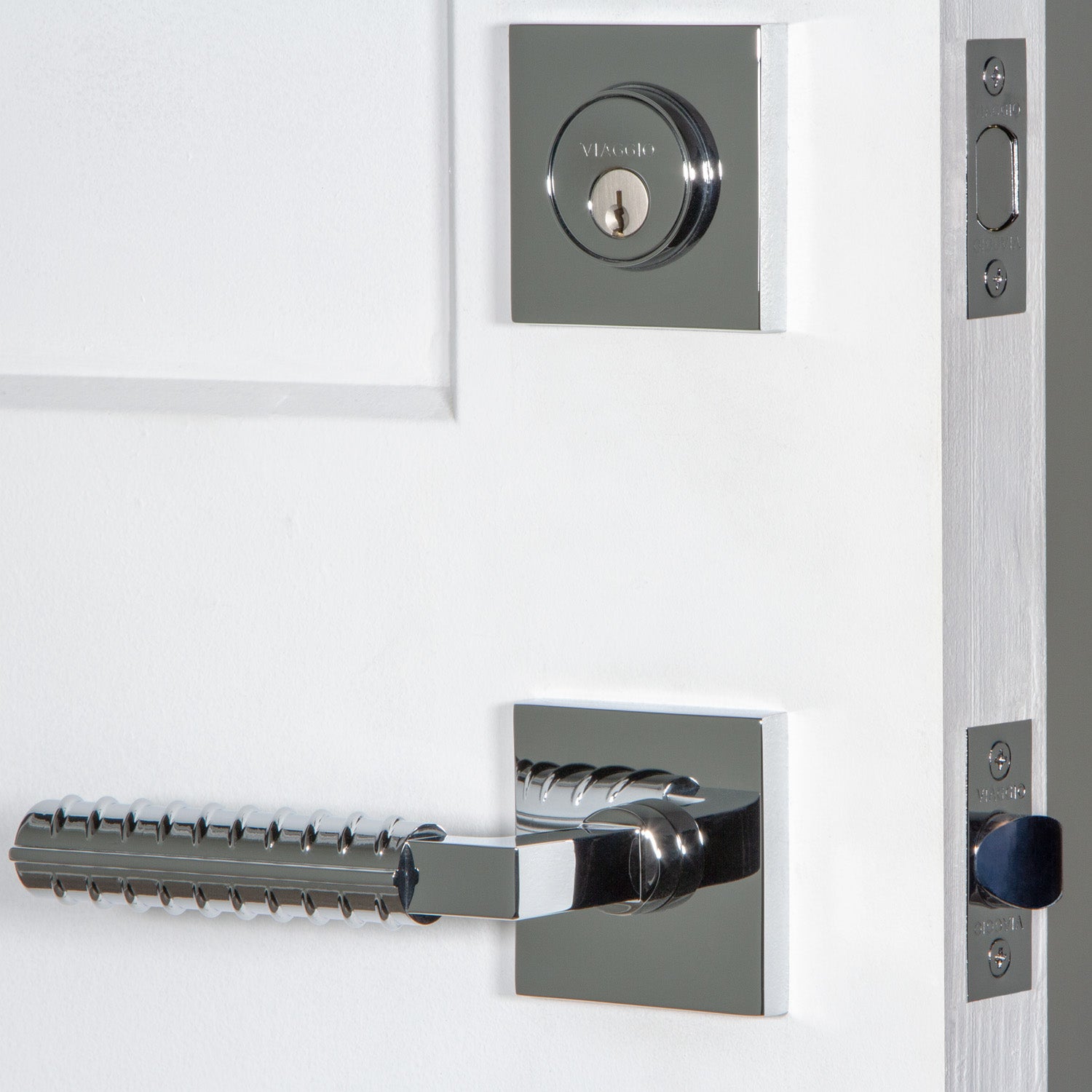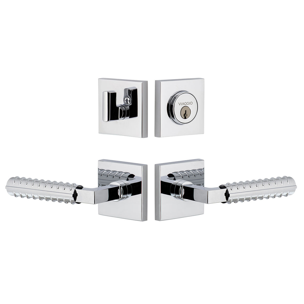 Quadrato Rosette Entry Set with Contempo Rebar Lever in Bright Chrome