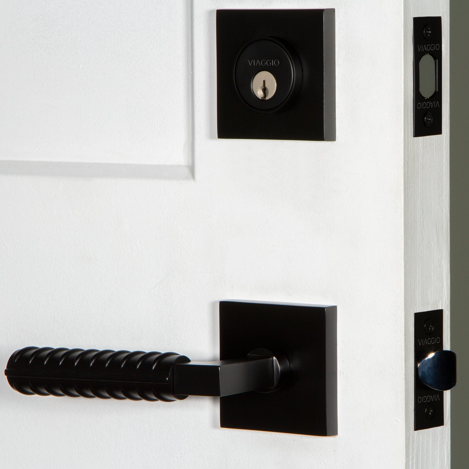 Quadrato Rosette Entry Set with Contempo Rebar Lever in Satin Black