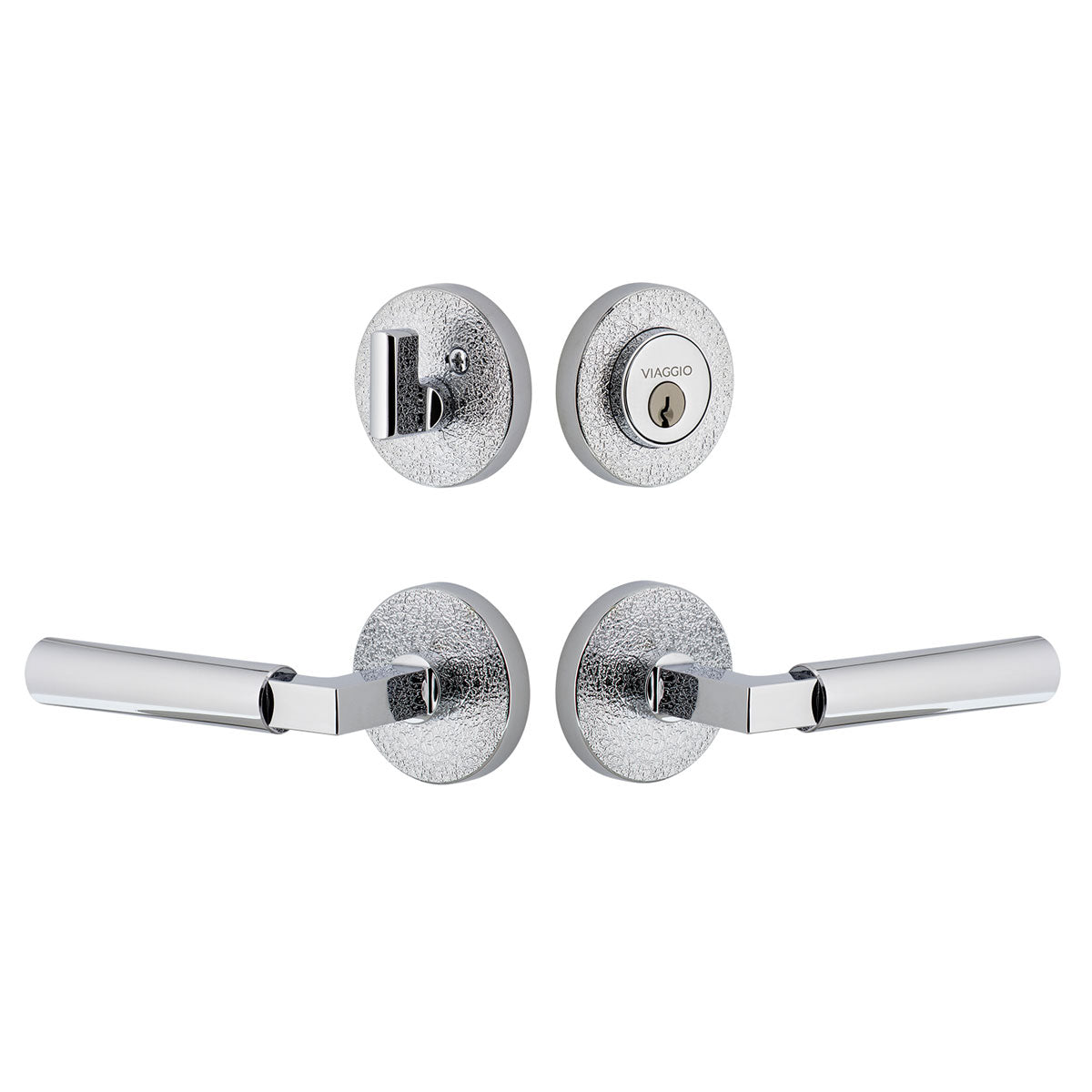 Circolo Leather Rosette Entry Set with Contempo Lever in Bright Chrome