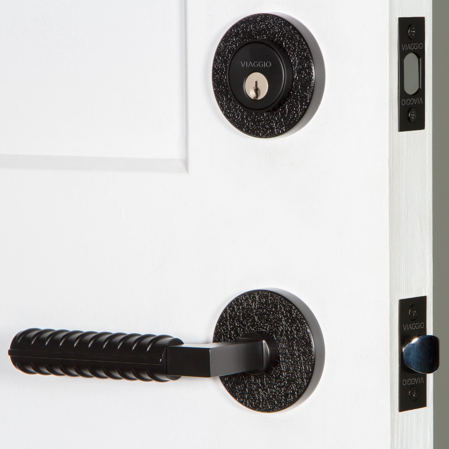 Circolo Leather Rosette Entry Set with Contempo Lever in Satin Black