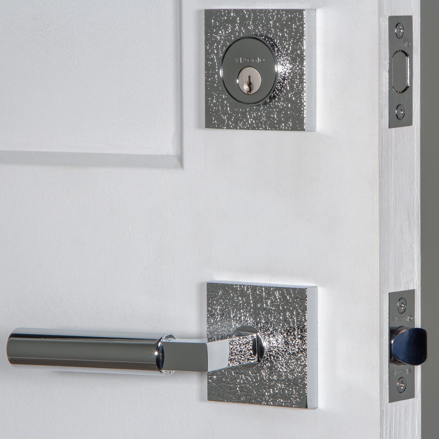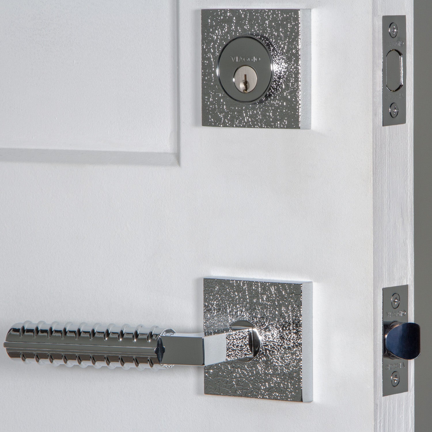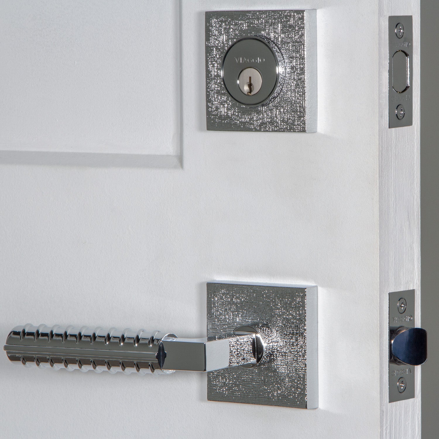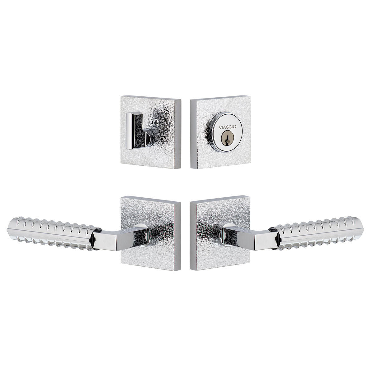 Quadrato Linen Rosette Entry Set with Contempo Rebar Lever in Bright Chrome