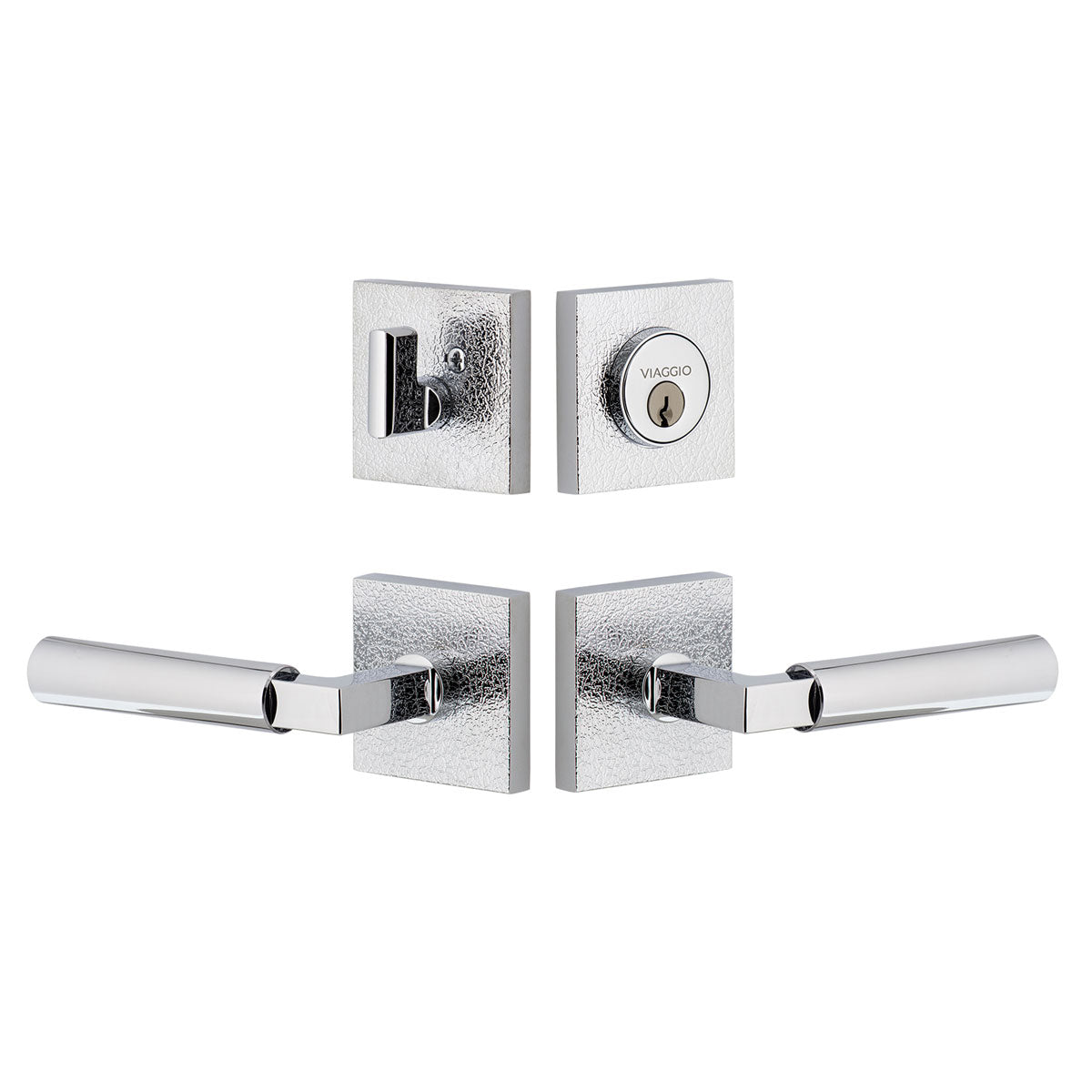 Quadrato Leather Rosette Entry Set with Contempo Lever in Bright Chrome