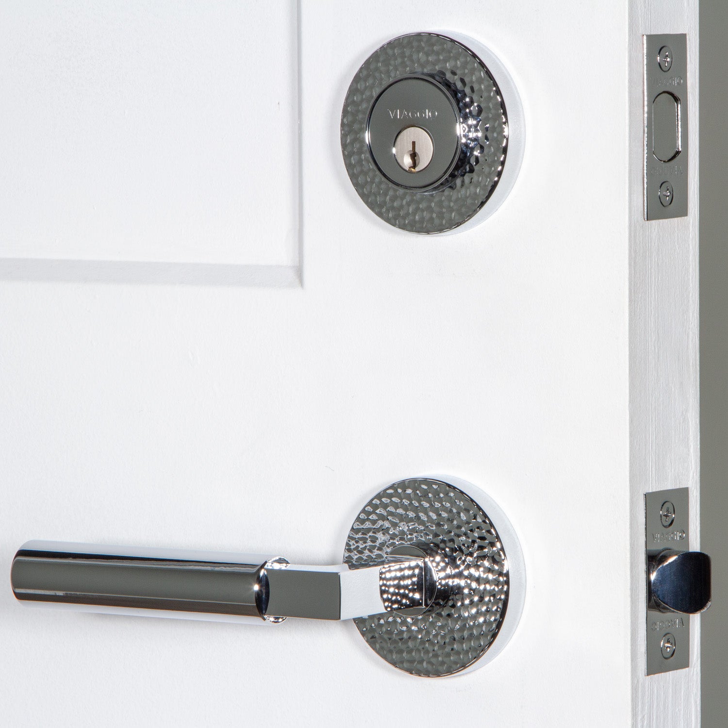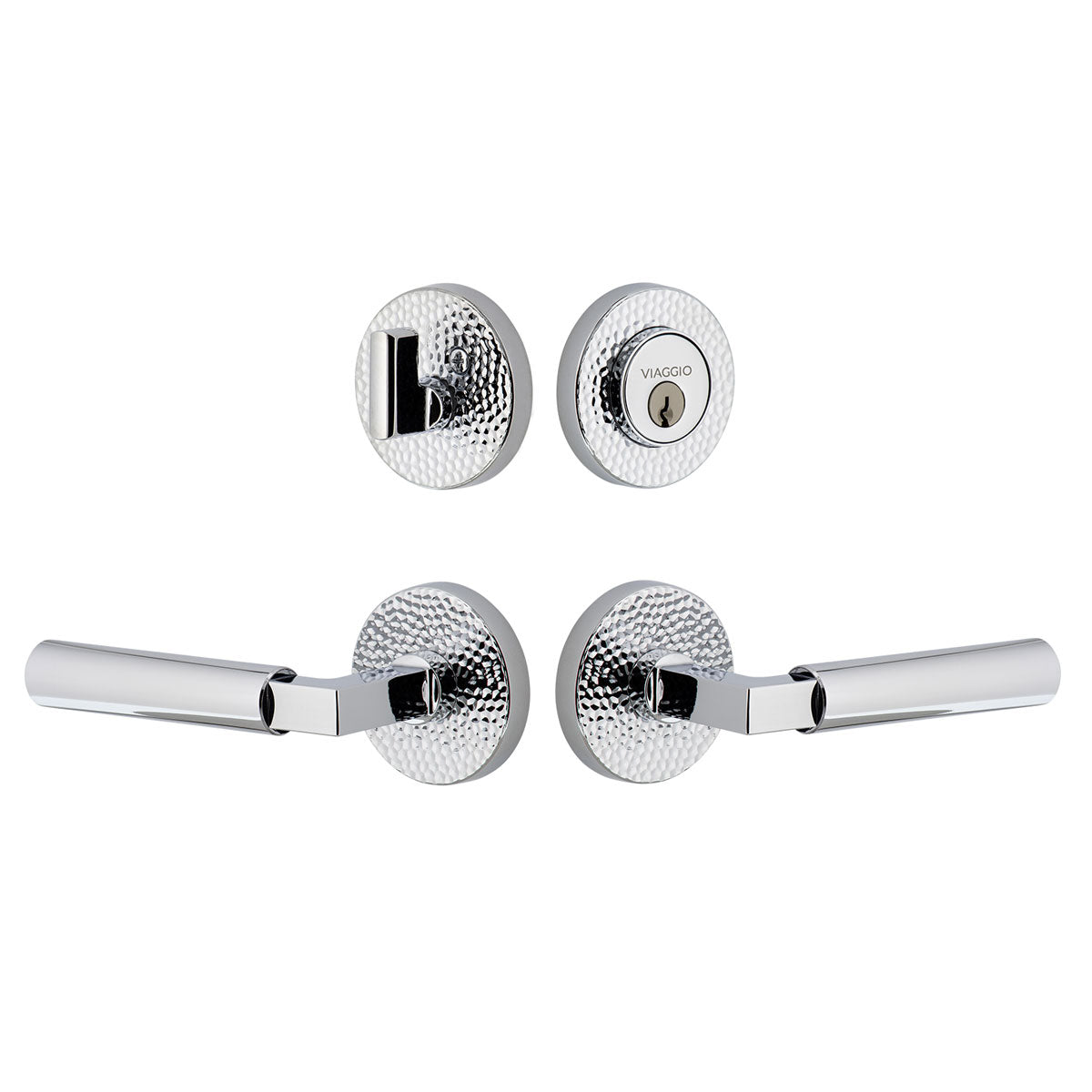 Circolo Hammered Rosette Entry Set with Contempo Lever in Bright Chrome