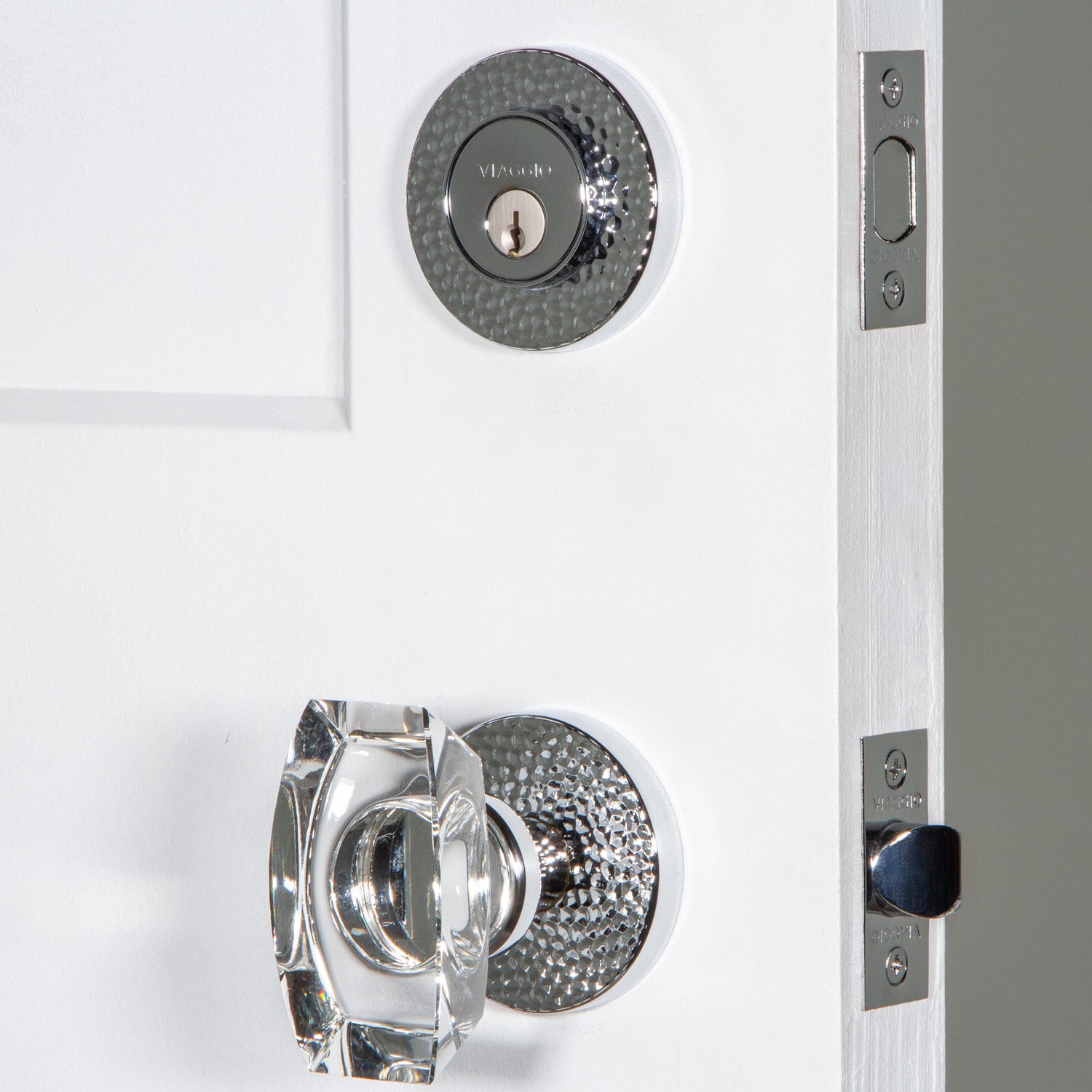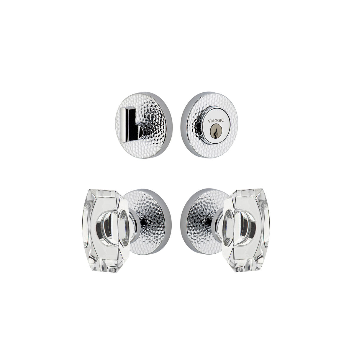 Circolo Hammered Rosette Entry Set with Stella Knob in Bright Chrome