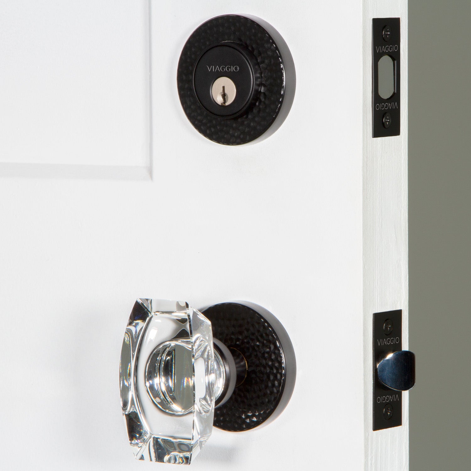 Circolo Hammered Rosette Entry Set with Stella Knob in Satin Black