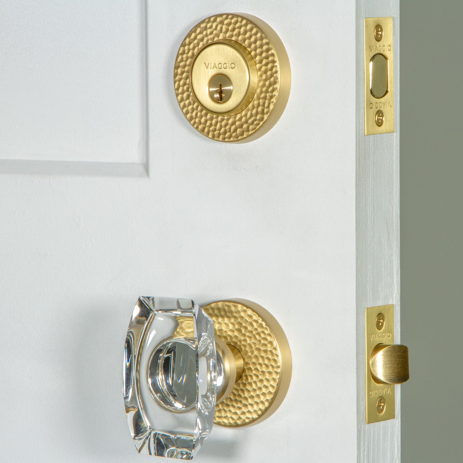 Circolo Hammered Rosette Entry Set with Stella Knob in Satin Brass