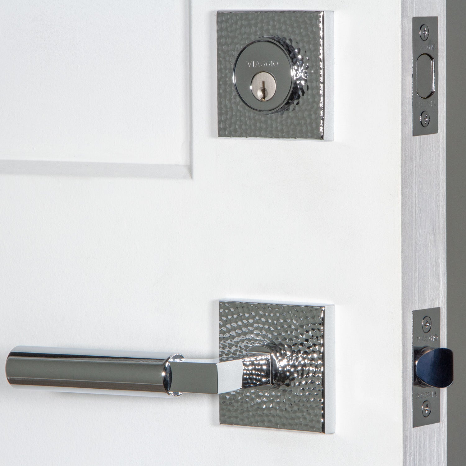 Quadrato Hammered Rosette Entry Set with Contempo Lever in Bright Chrome