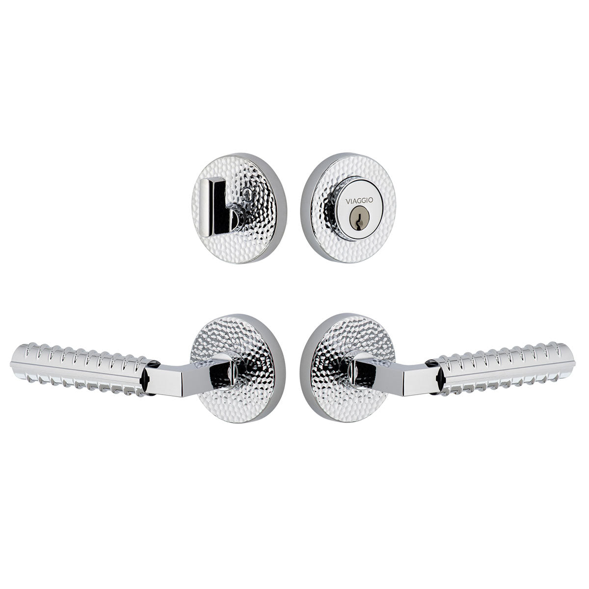 Circolo Hammered Rosette Entry Set with Lusso Lever in Bright Chrome