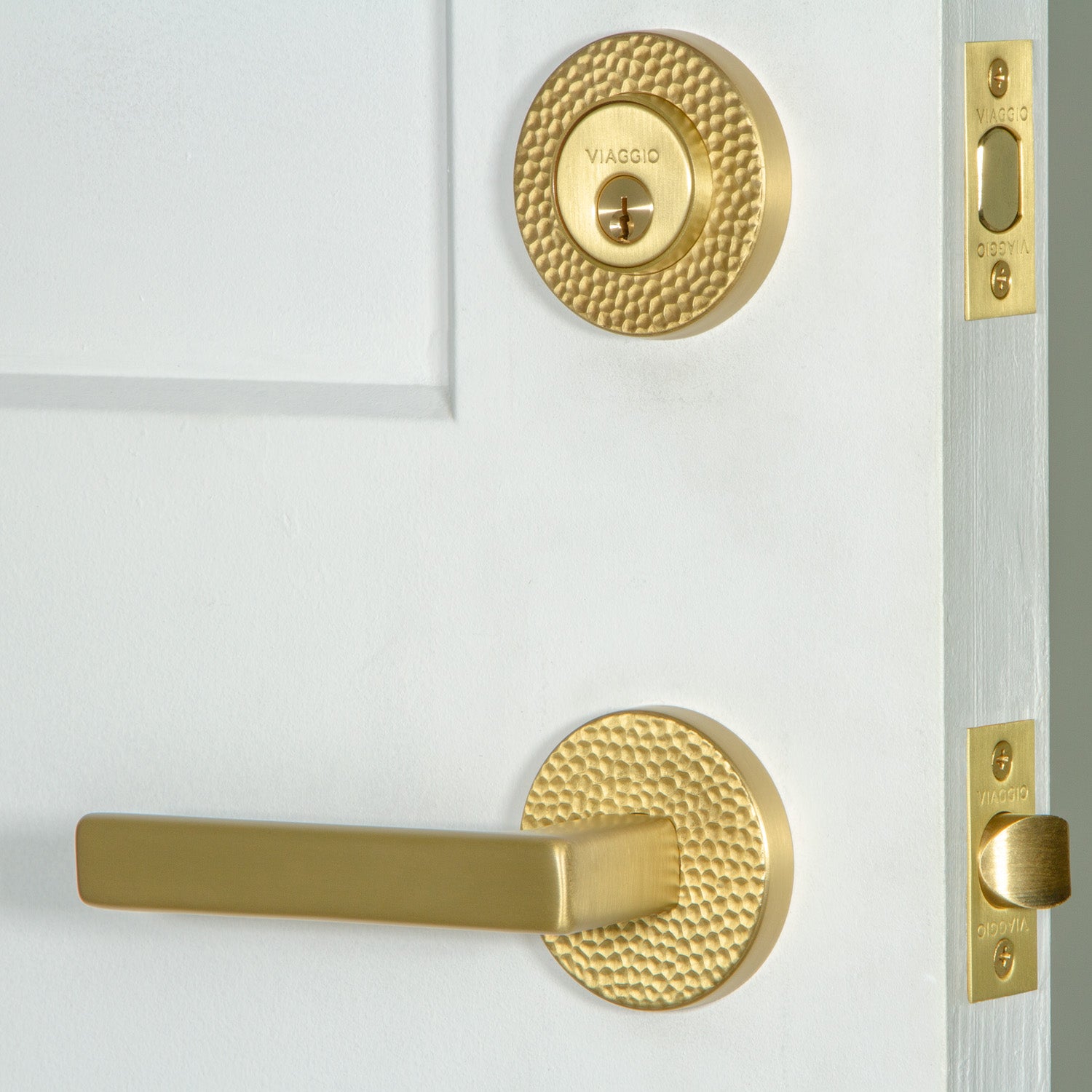 Circolo Hammered Rosette Entry Set with Lusso Lever in Satin Brass