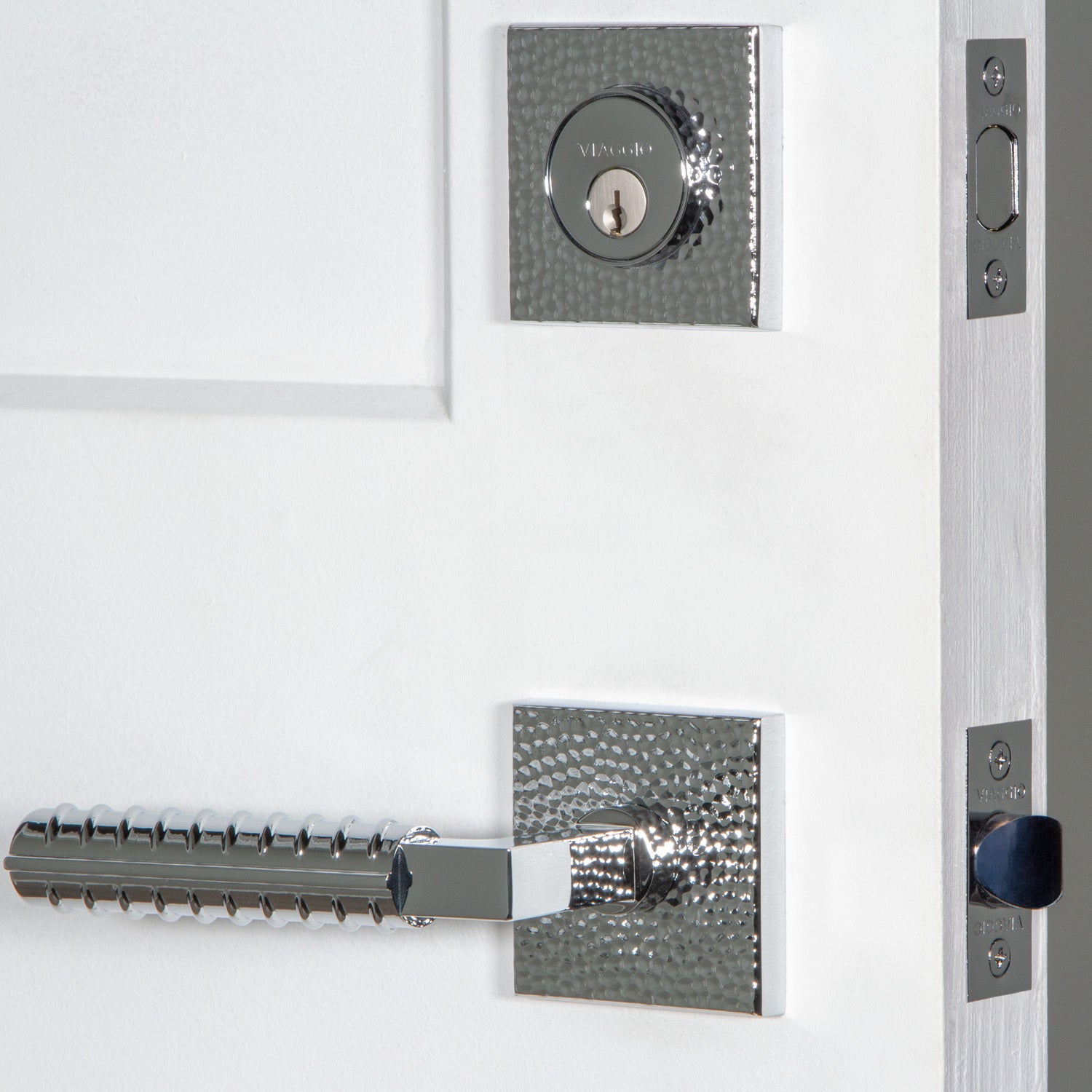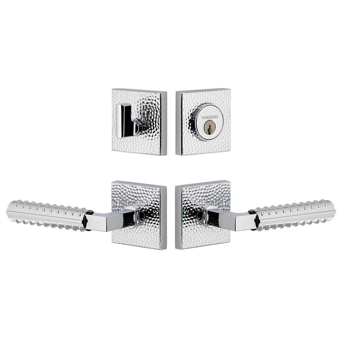 Quadrato Hammered Rosette Entry Set with Contempo Rebar Lever in Bright Chrome