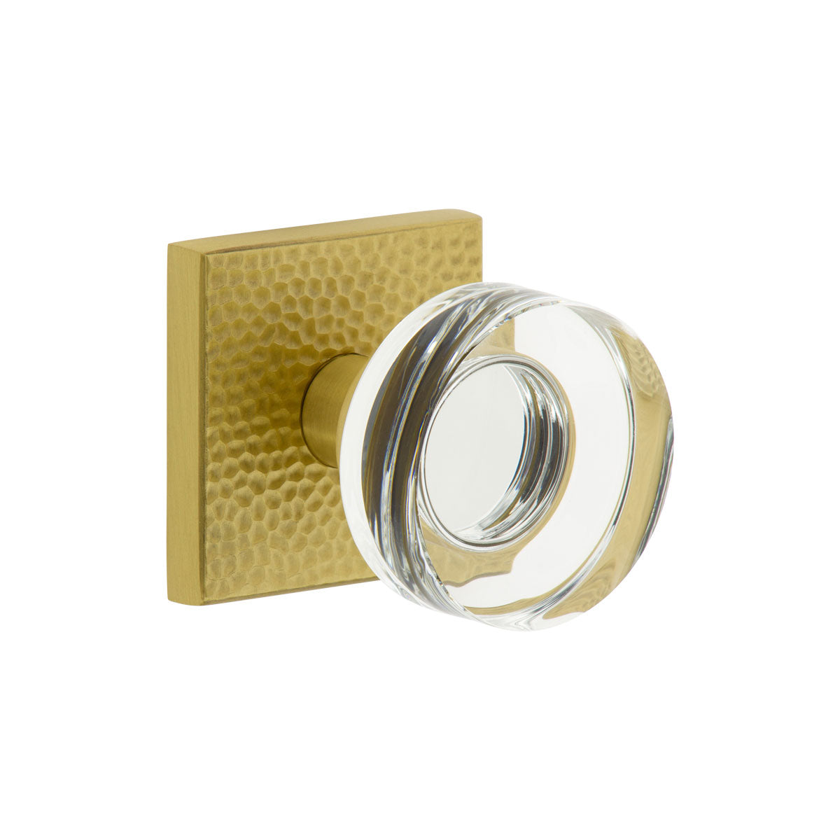Quadrato Hammered Rosette with Circolo Crystal Knob in Satin Brass
