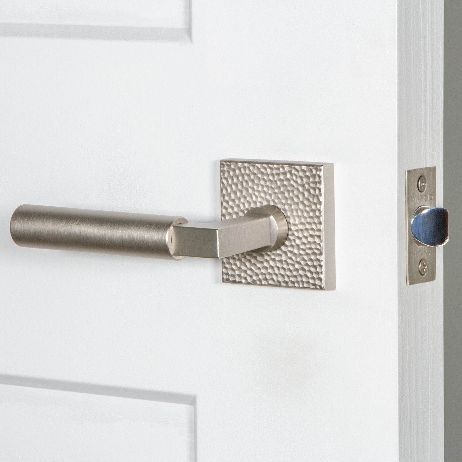 Quadrato Hammered Rosette with Contempo Lever in Satin Nickel