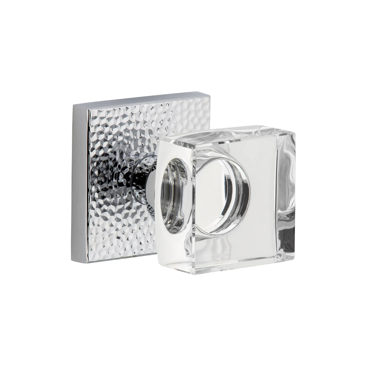 Quadrato Hammered Rosette with Quadrato Knob in Bright Chrome