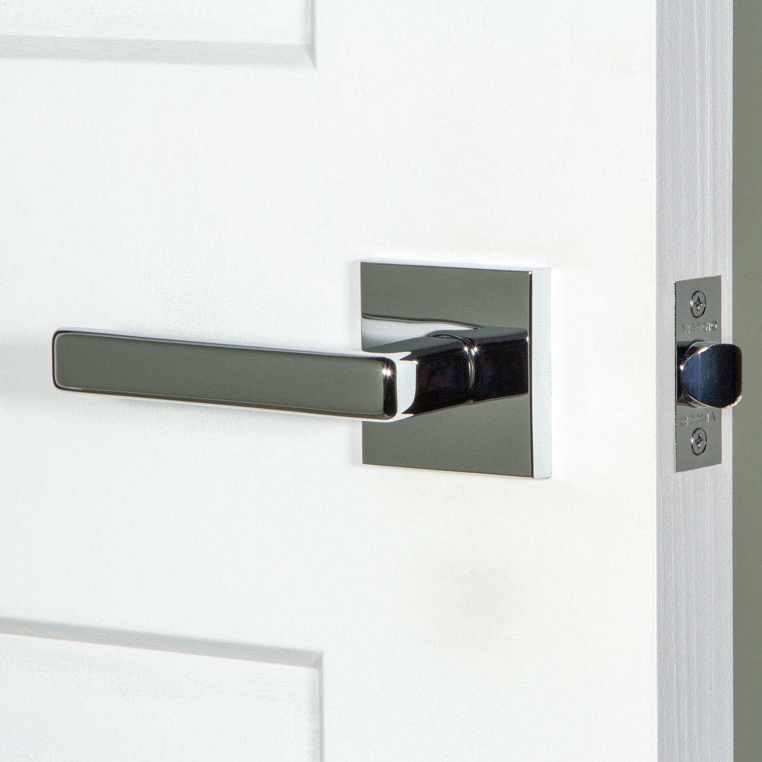 Quadrato Rosette Entry Set with Milano Lever in Bright Chrome
